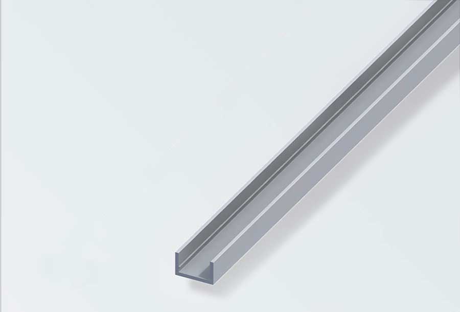 U-profilen i sølveloxeret aluminium er ideel til at understøtte emner og give større stabilitet. Kan også bruges som skinner til at fastholde bagbeklædning. Mål: (a) 10 mm, (b) 11,5 mm, (c) 1,5 mm. Indvendig mål- 8,5 mm.