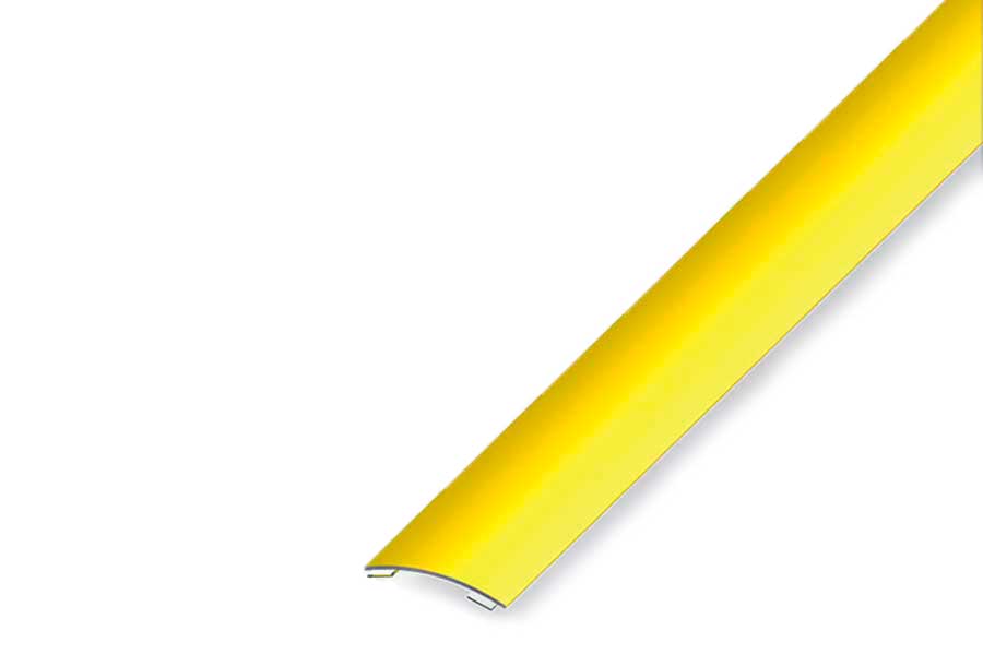 Overgangsprofil i messing med buet overgang og selvklæb. Velegnet til at skabe en pæn, jævn og elegant overgang mellem to gulvtyper. Mål: (a) 30 mm, (b) 5 mm.