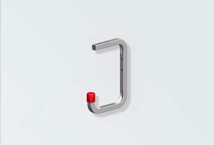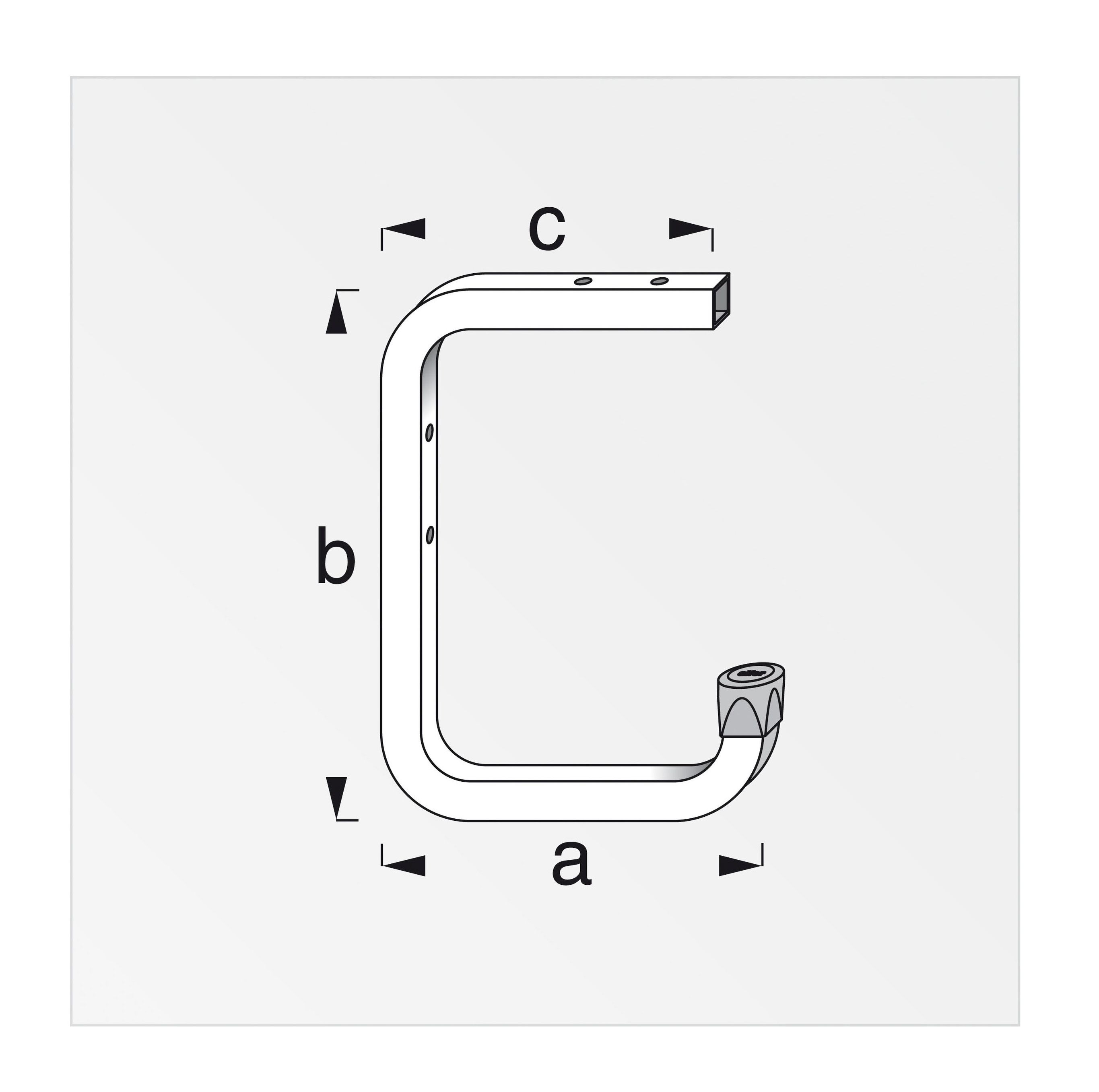Væg/loftkrog i galvaniseret stål med rød gummibelægning. Kan anvendes sammen med X- star skinne ID 2602934 og Alfer monteringsbeslag ID 2603831. Bæreevne max. 30 kg. Mål: (a) 115 mm (b) 160 mm (c) 100 mm.