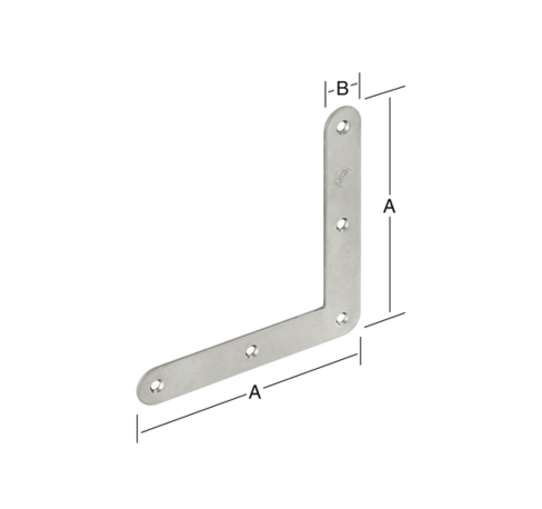 Vinkelbeslag i rustfrit stål A2 er ideelle til fastgørelse eller samling af emner. Mål: Længde 100 mm (A).Bredde 20 mm (B). Materialetykkelse 2 mm.