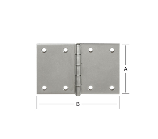 Robust kanthængsel med mange anvendelses-muligheder, eks til køkken eller skabslåger. Med 6 nedsænkede skruehuller Ø 3,0 mm. Mål: Længde 60 mm (A). Bredde 46 mm (B). Materialetykkelse 1,2 mm