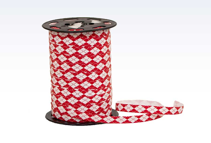 Printet Ivan polybånd i rød. Naturtro og nostalgisk tekstilprint. Gavebåndetføres i 6 forskellige farver. Passer perfekt sammen med typen Sasha med harlekin tern i samme farvetone. Farvekode 79 rød.