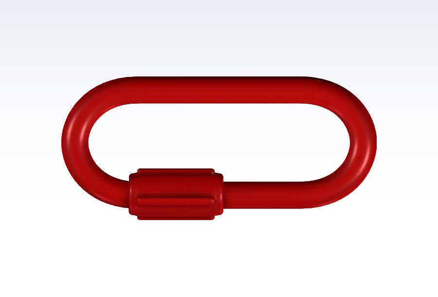 Skruenødled af rød plast er velegnet til at fastmontere forskellige emner som f.eks kæder, wire, tov m.m. Pose med 25 stk.