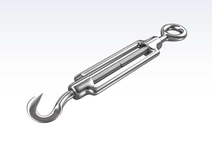 Wirestrammer med øje i den ene ende og krog i den anden. Anvendes til opstramning af wirekabler, reb og lignende ved at dreje på gevindene. Leveres løse i poser à 5 stk.