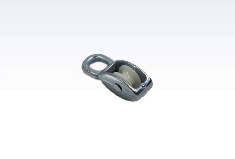 Blokrulle med drejeligt hus og hjul i A2 rustfrit stål. Anvendes til ophængning af wire og tovværk. Brudstyrke 3300 kg- Vedvarende arbejdsbelastning max 550 kg. Må ikke anvendes til træk og løft.