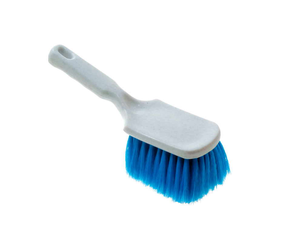 Autobørste i plastik med blå bløde hår.