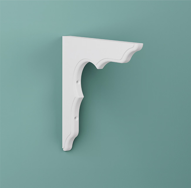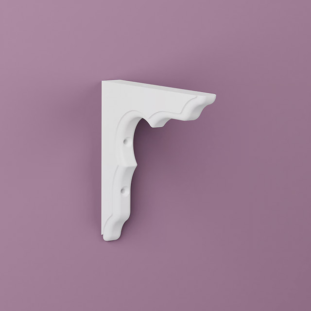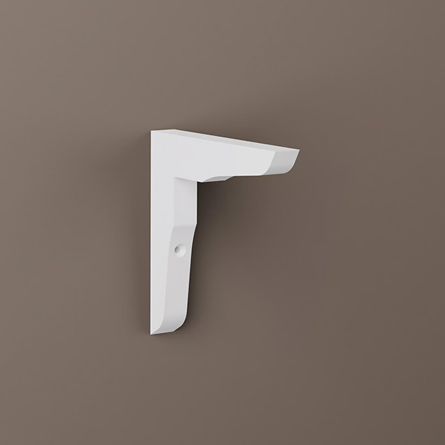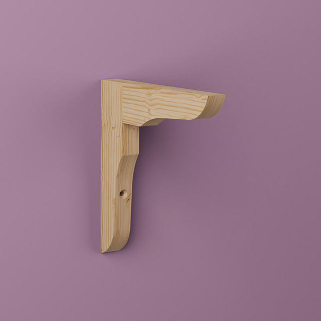 Hyldeknægt i hvidlakeret fyr (Farvekode NCS S0500-N halvblank hvid). 1 forsænket borehul til ophæng samt 1 forsænket borehul til hyldemontering. Dybde 150 mm. Skruer medfølger ikke. Vejl. max. belastning 30 kg. afhængig af plugs og vægmateriale.