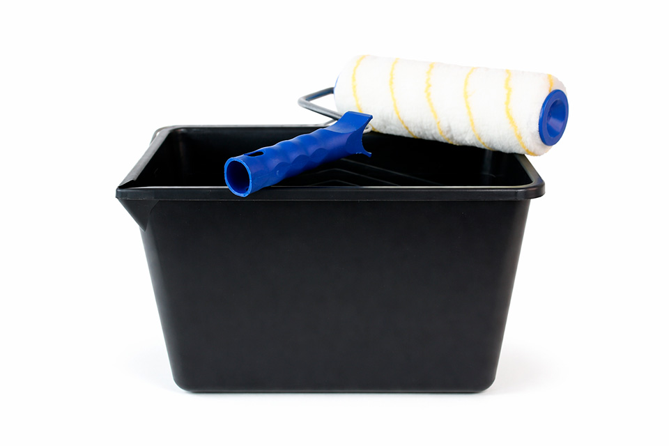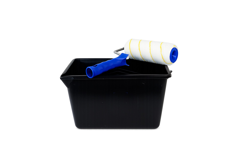 Malerspand i sort plast med hank og hældetud. Spanden kan rumme 8 liter maling og passer til malerruller med en maximal bredde på 18 cm.