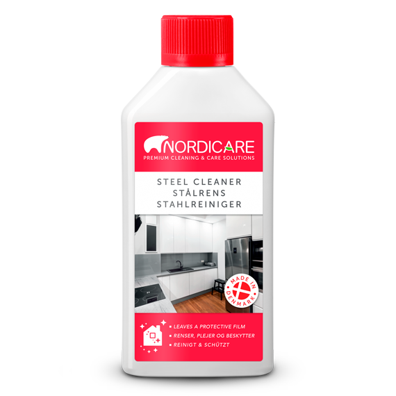 Rustfri ståloverflader, køleskab, ovn mm. Fjerner nemt fingeraftryk, fedt & snavs. Udviklet og produceret i Danmark.