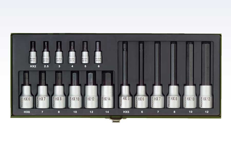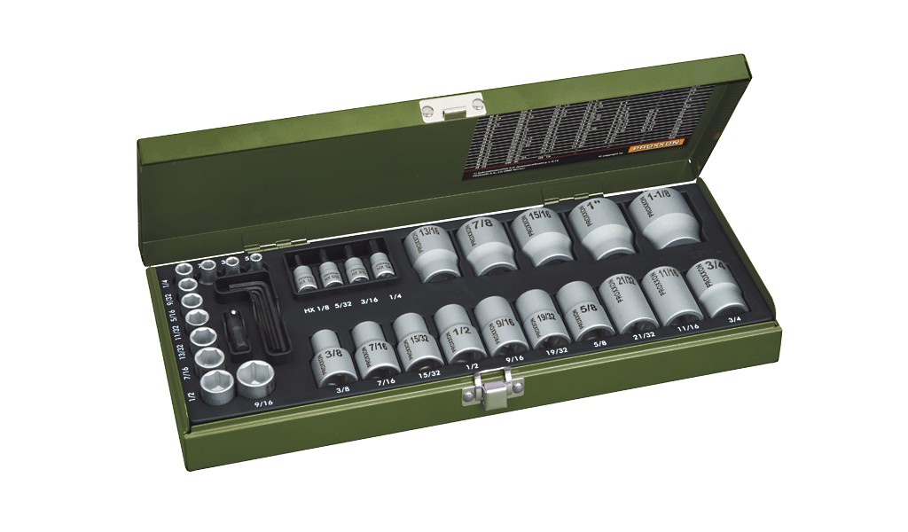 Super kompakt 3/8" topnøglesæt med bit toppe, unbrako nøgler samt 4 stk. tændrørstoppe. 65 dele leveres i en solid metalboks.