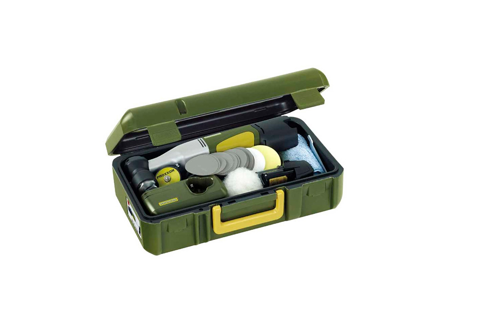 PROXXON MICROMOT-værktøj er designet til præcisionsopgaver og adskiller sig fra almindeligt elværktøj ved at være finere, mindre og lettere. Enheden er udstyret med en kraftig, støjsvag og holdbar permanent-magnetmotor, men dens kompakte størrelse gør den følsom over for overbelastning. Derfor er det afgørende at arbejde med let hånd og ikke presse for hårdt! – ydeevnen opnås gennem høj hastighed, ikke ved hårdt tryk. Hvis værktøjet bliver for varmt under brug, bør man holde pause og lade det køle af.