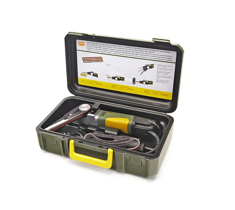 Inkl. 1stk. 10,8 V lithiumbatteri, lader, 4 slibebånd korn 80/180 og 2 Satin finishbånd.