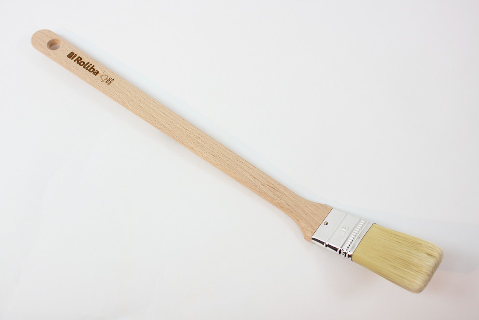 Stikpensel med spaltede spidser og skaft af bøgetræ, som er ergonomisk udformet og derfor behagelig at arbejde med. Den har en vinkel på skaftet, der gør at den kan komme ind til svært tilgængelige steder. Til maling inde/ ude.