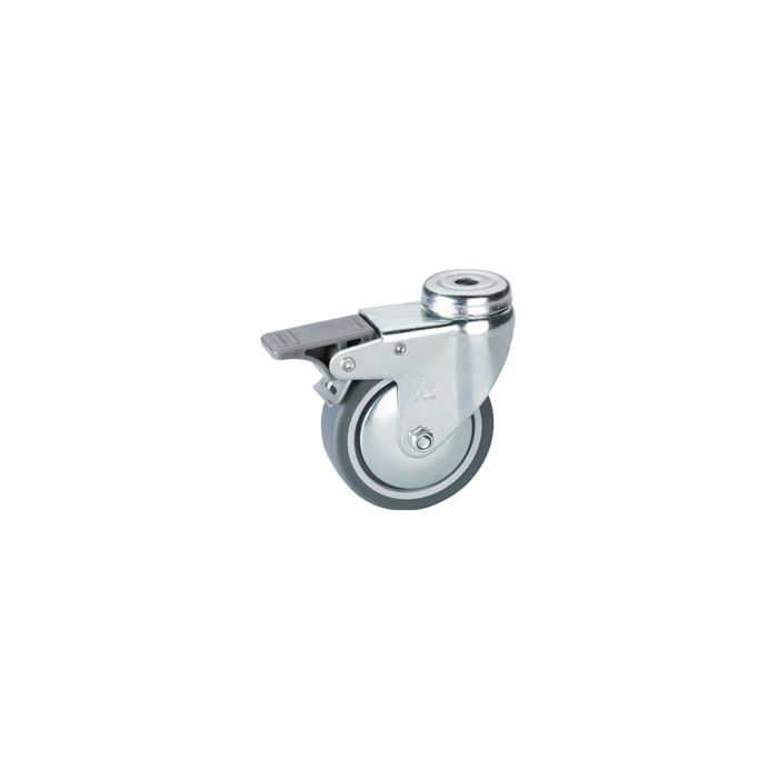 Apparathjul drejeligt med TPE belægning, bolthul og bremse 100 x 25 mm