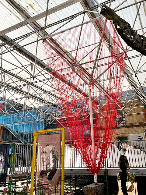 Udsmykningen kunne opleves i gadebilledet med snorens streger på vægge og porte – et sanseligt og tankevækkende indslag i festivalens kunstneriske univers.